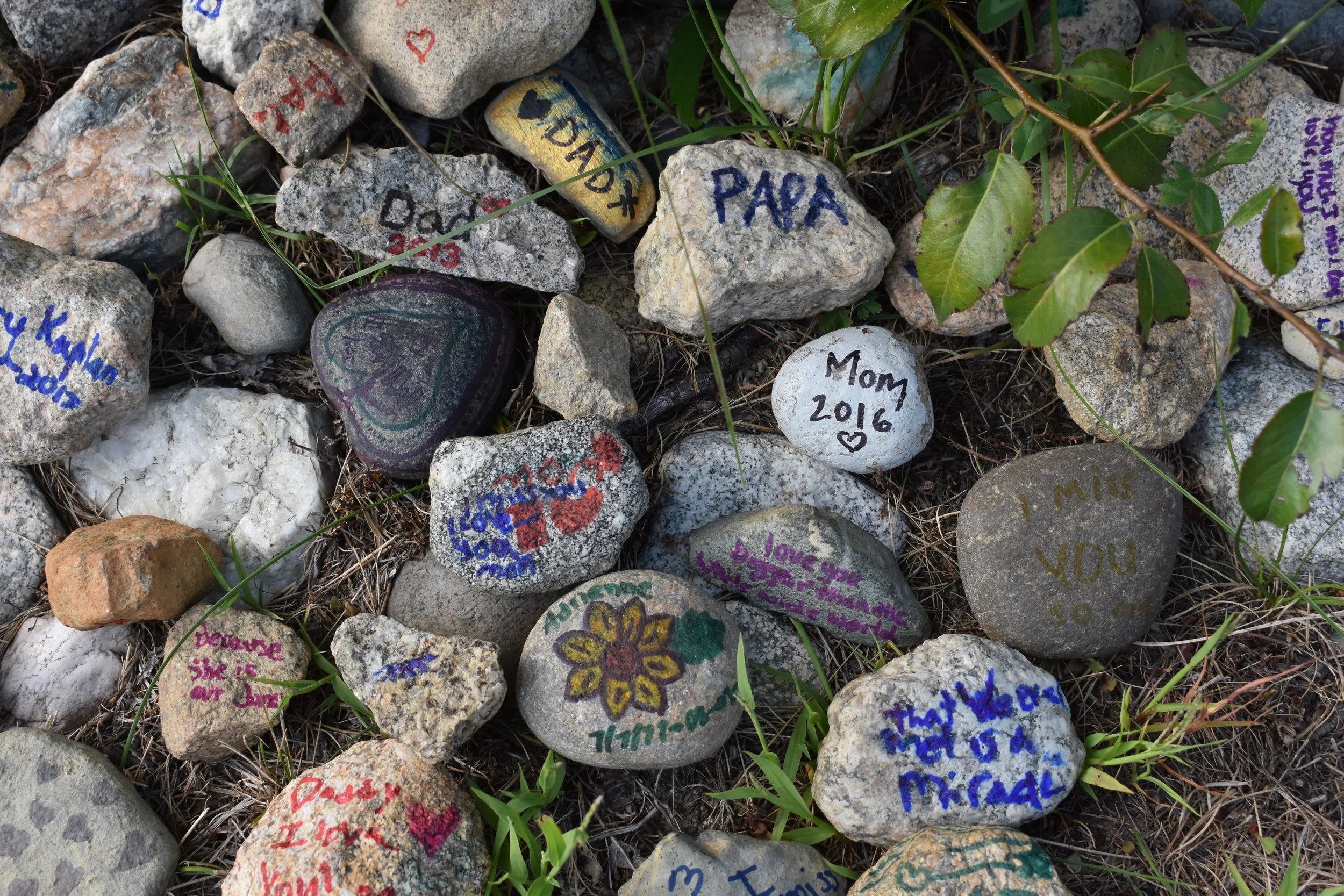 Throughout the week, campers reflect individually and with their bunks as they select and decorate rocks. On the final afternoon, the community gathers to acknowledge the loved ones who brought each camper to Circle Camps and to honor the shared experience of grief.